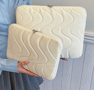 Cream Wavy - Bolso protector para laptop o tablet